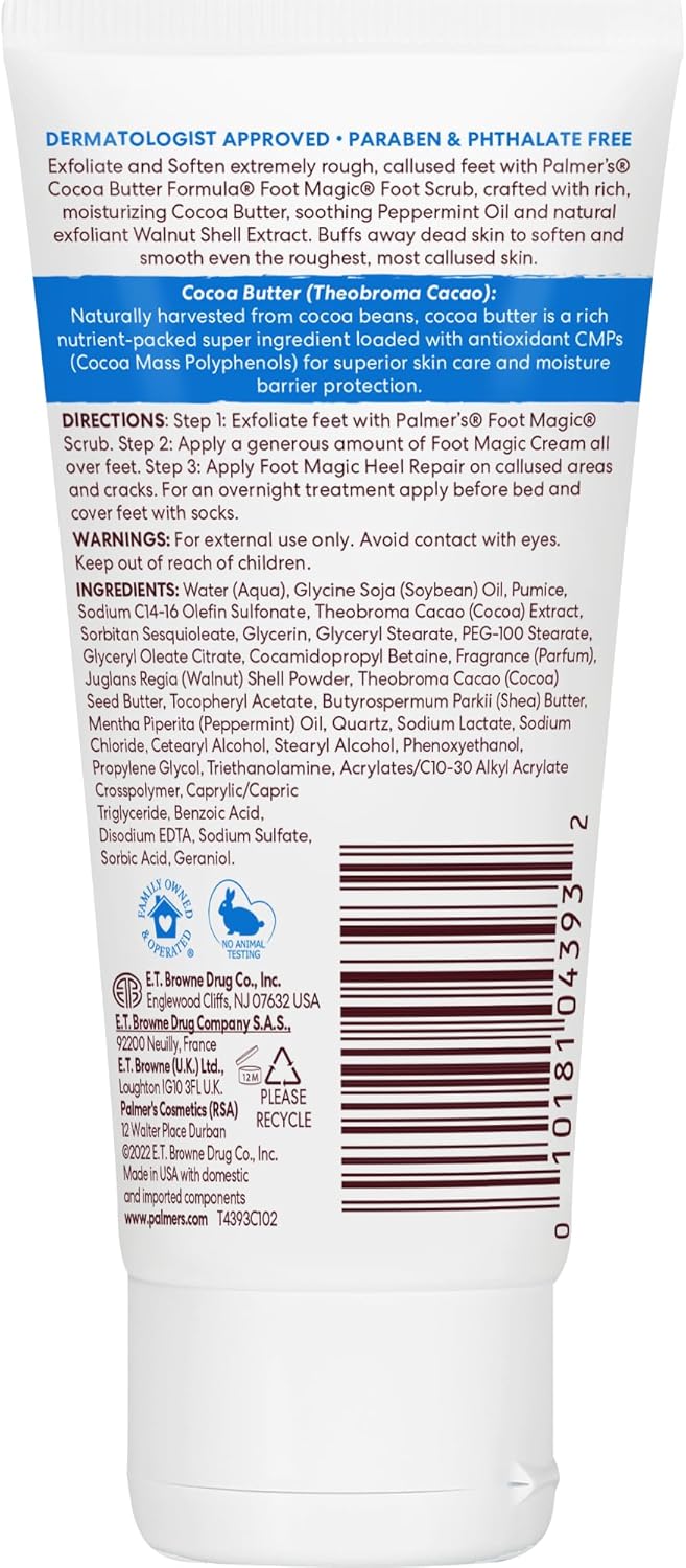 Palmer’s Cocoa Butter Formula Foot Magic Exfoliating Foot Scrub with Vitamin E, Use With Foot Scrubber for Pedicure, For Dry, Cracked Feet, 2.1 Ounce