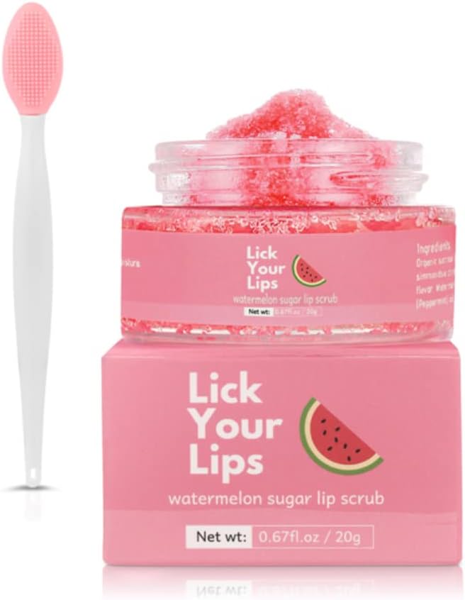 Be the first to review “Watermelon Sugar Lip Scrub for Dry, Cracked and Dark Lips by Lick Your Lips – Organic Lip Scrubs Exfoliator and Moisturizer with Lip Brush – Vegan, Cruelty-Free Lip Care Product (20g)”
